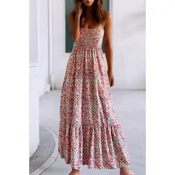 The Boho Floral Smocked Ruffled Maxi Dress is the perfect fusion of bohemian charm and western elegance. Whether you're attending a summer wedding, going out with the girls, or a casual gathering, this maxi dress brings a relaxed, yet refined look to any occasion. Pair it with sandals for an effortlessly chic, western-inspired vibe. This is the ideal dress for those who love to embrace their inner free spirit while looking and feeling fabulous.