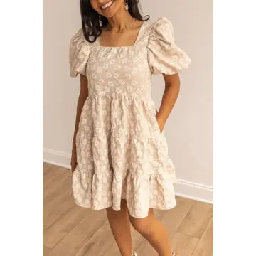 The Beige Floral Puff Dress with Pockets is the perfect blend of feminine charm and western-inspired elegance. Featuring a soft beige hue with a delicate floral print, this dress is a timeless piece that offers effortless style and comfort. The puff sleeves add a playful touch, while the roomy pockets provide both functionality and flair. The flattering silhouette and breathable fabric make it ideal for all-day wear, while the floral design brings a refreshing touch of nature to your wardrobe. Embrace effortless western style and beauty with this must-have dress!
