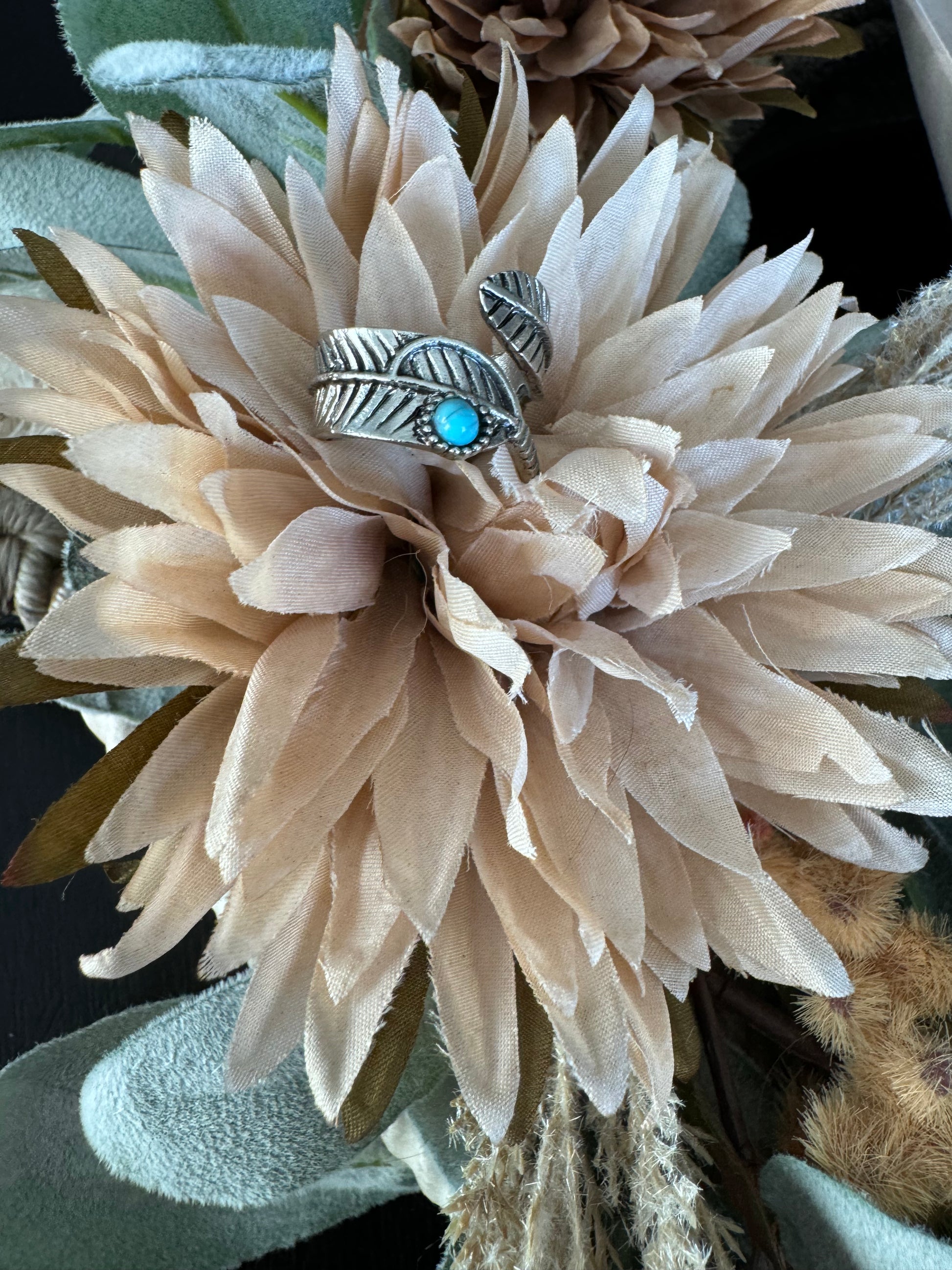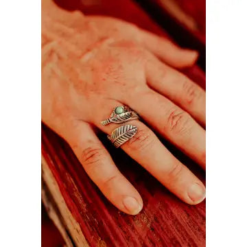 This stunning Feather Wrap Ring combines rustic charm with a touch of elegance, making it a must-have for any western jewelry collection. The ring features a delicate feather design that wraps around the finger, symbolizing freedom and the beauty of nature. Accented with vibrant turquoise piece, this adds a pop of color and southwestern flair. Perfect for adding a boho-chic vibe to your wardrobe, this ring is ideal for both casual and dressy occasions, embodying the spirit of the West in a modern, stylish way.