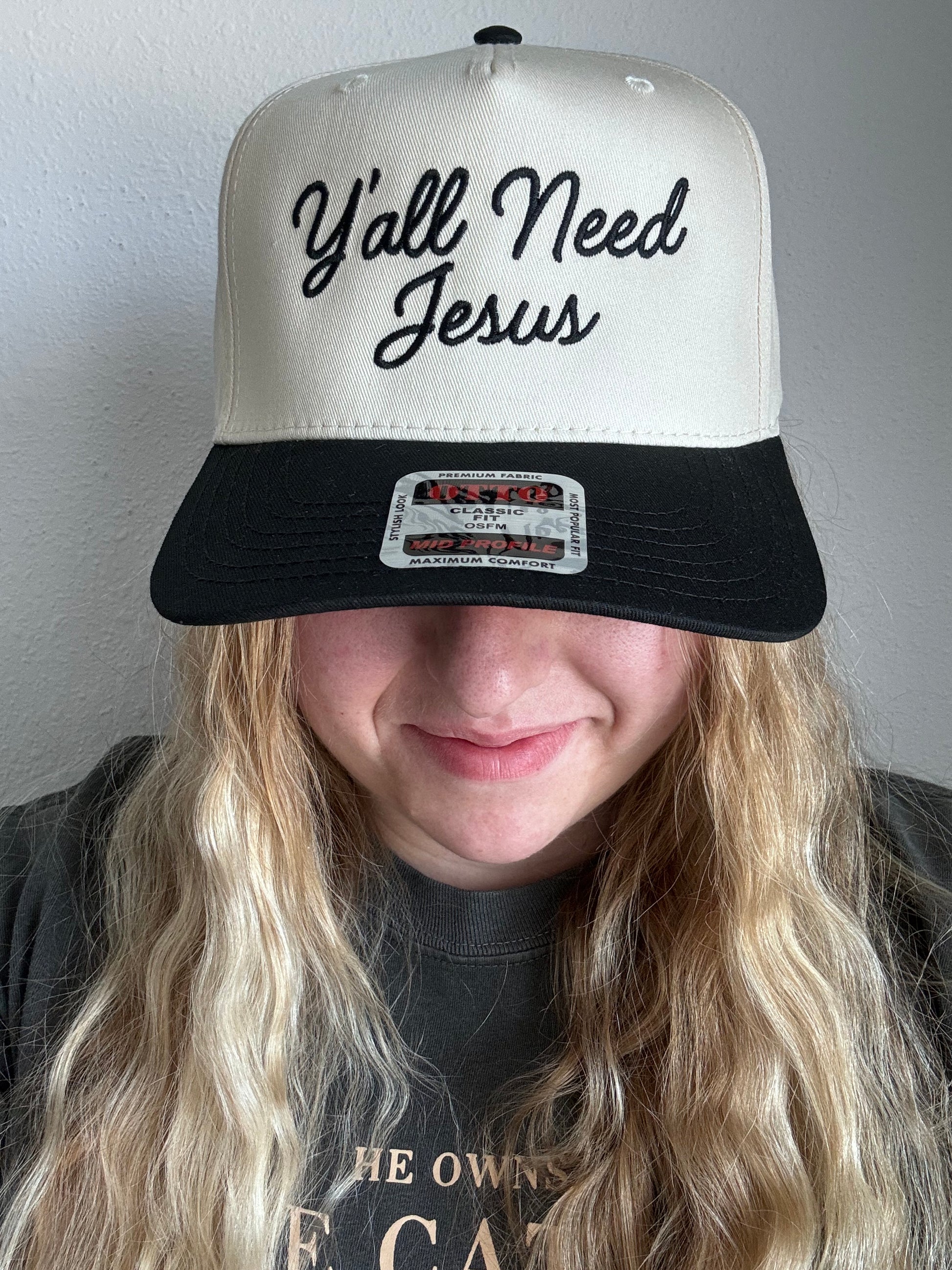 Show your faith with style in the Y'all Need Jesus Hat. This thoughtfully embroidered cap is perfect for spreading a positive message wherever you go. Its comfortable fit and classic design make it an easy everyday accessory that keeps you looking sharp while sharing an uplifting reminder. Embrace your beliefs confidently and inspire those around you with this standout hat.